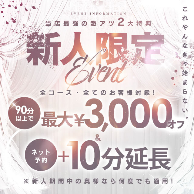 【新人限定割】ネット予約で10分延長&最大3,000円オフ!